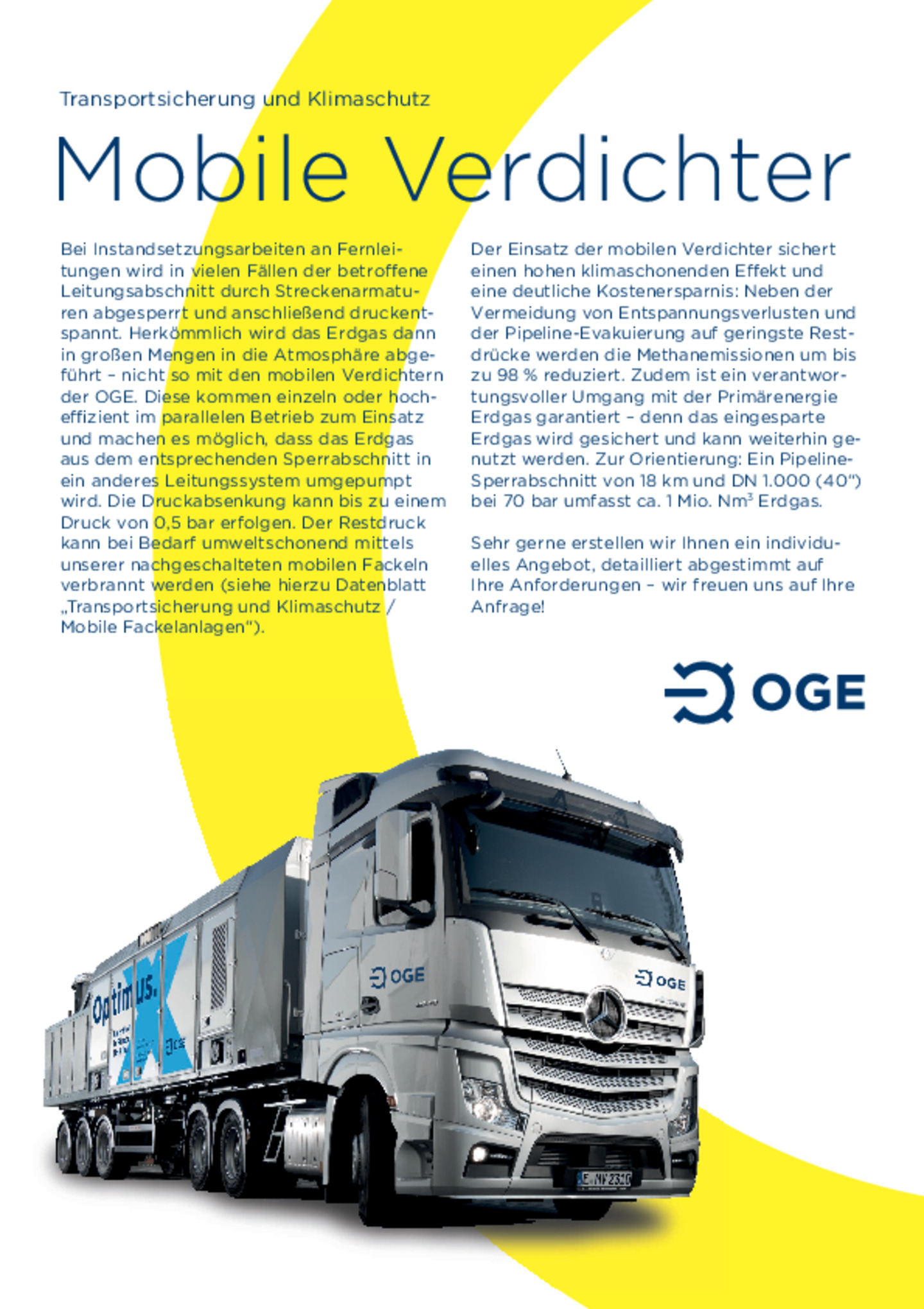 Bei Reparaturen am Erdgastransportnetz wird häufig das Erdgas aus dem gesperrten Abschnitt in die Atmosphäre abgelassen. Das ist ökonomisch und ökologisch nicht sinnvoll. Wir haben eine bessere Lösung: Unser mobiler Verdichter, der das Erdgas in andere Leitungssysteme umpumpt.