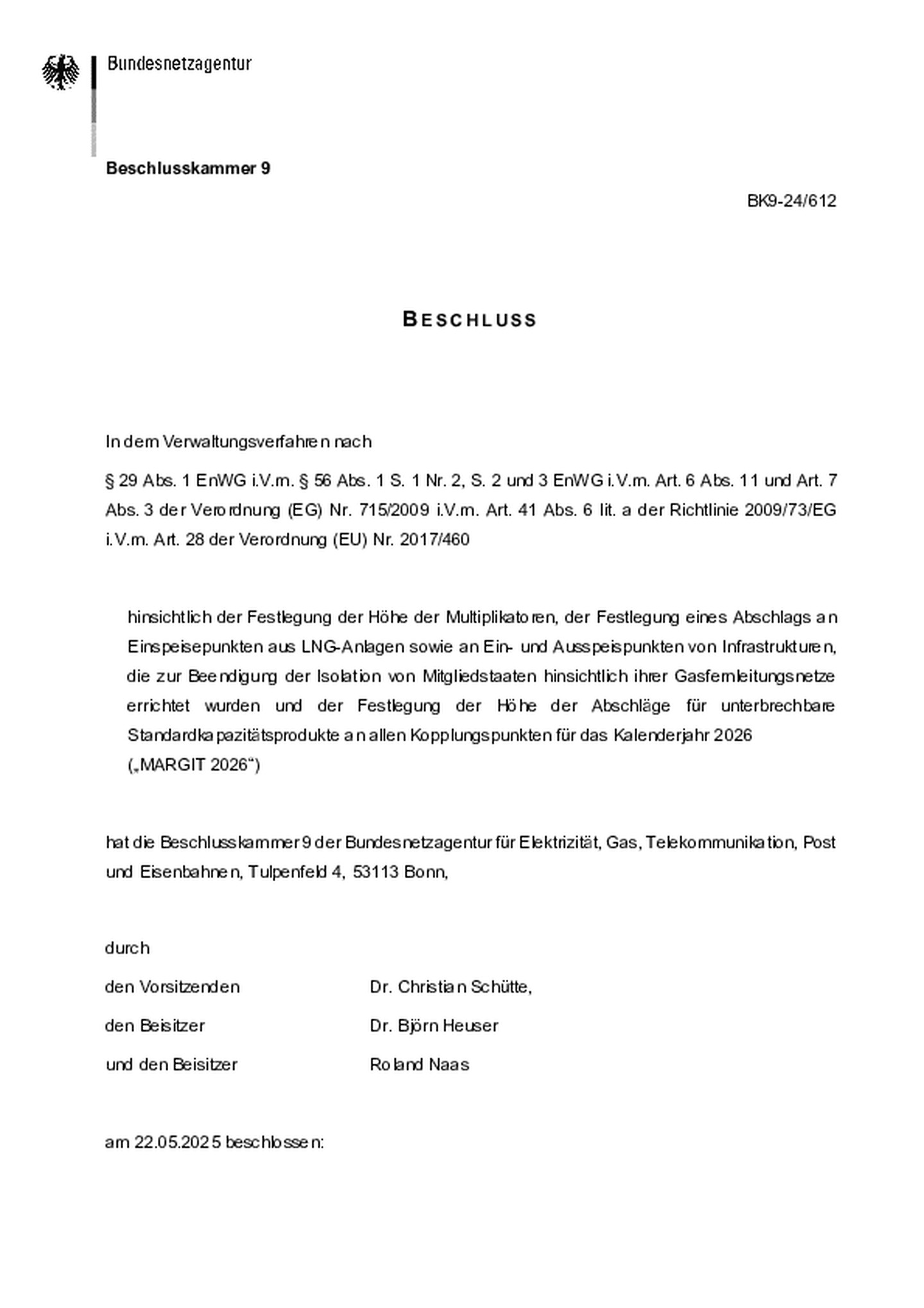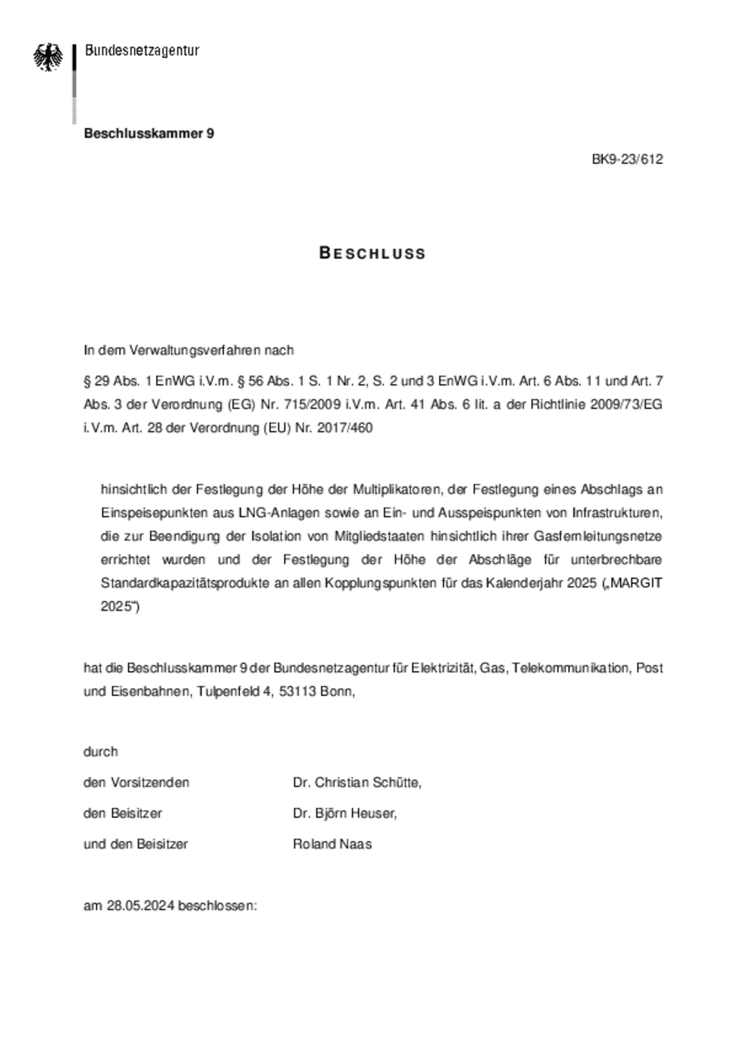 Festlegung „MARGIT 2025" und