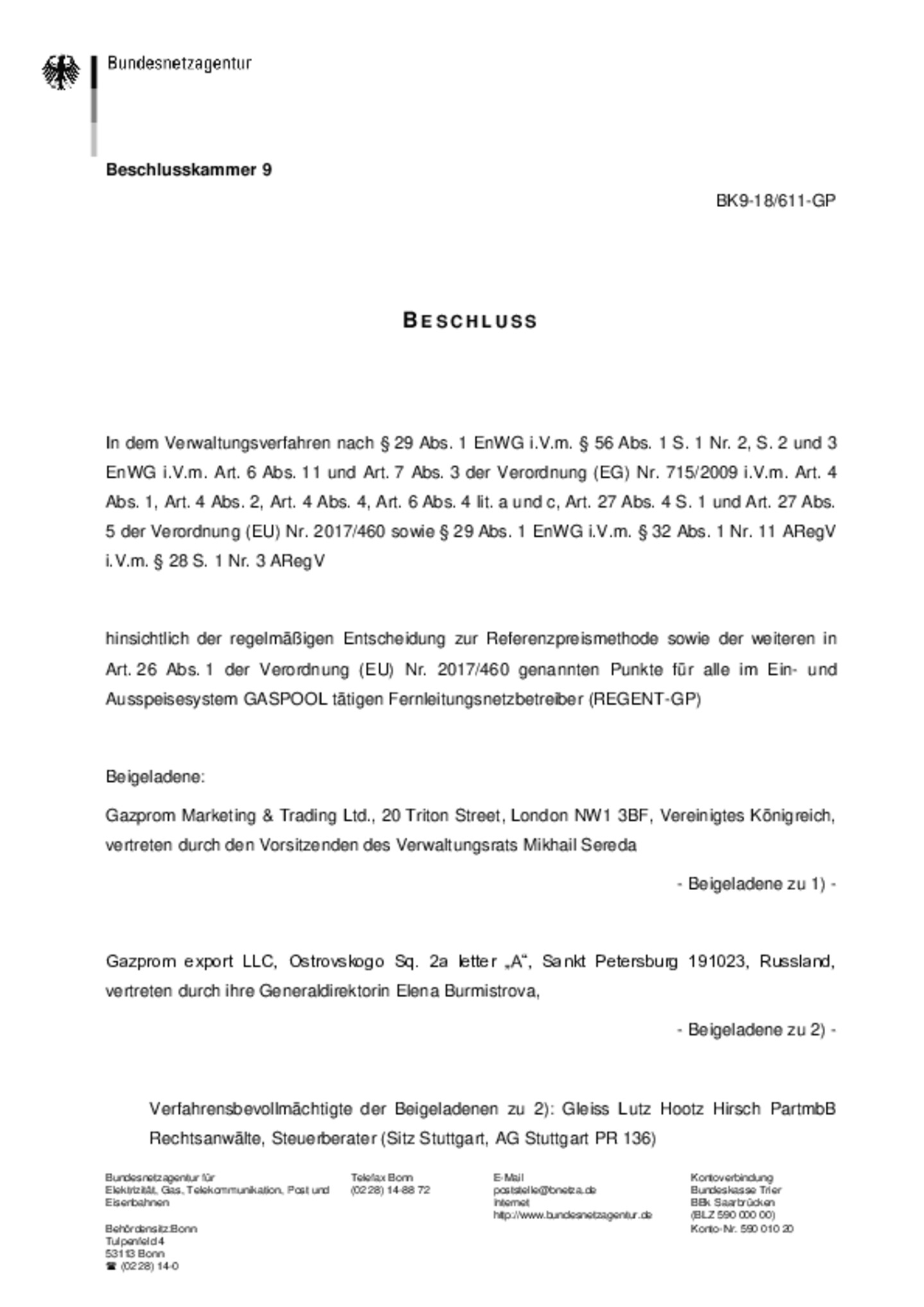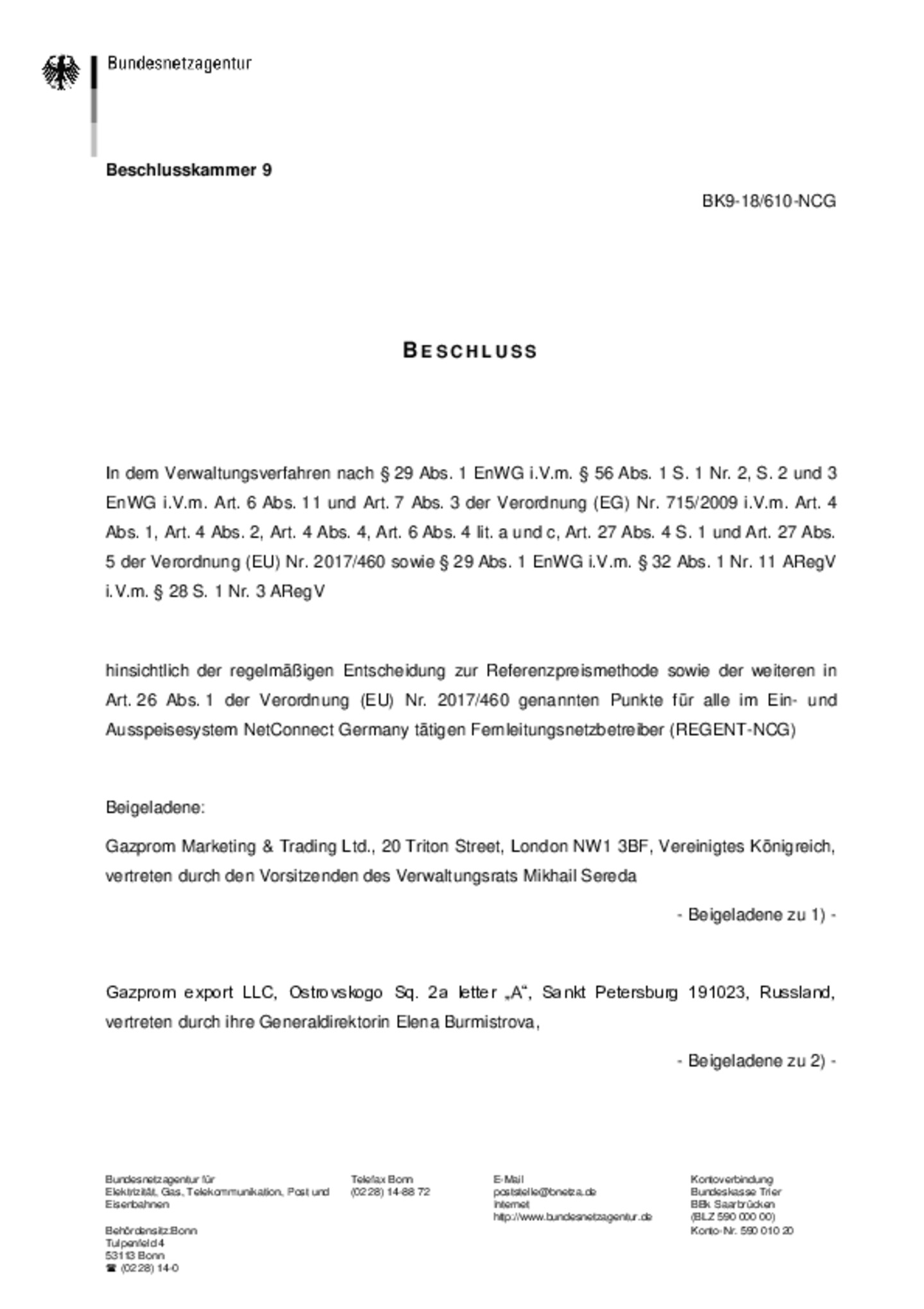 Veröffentlichung der Open Grid Europe GmbH gemäß Netzkodex über harmonisierte Fernleitungsentgeltstrukturen (Verordnung (EU) 2017/460)