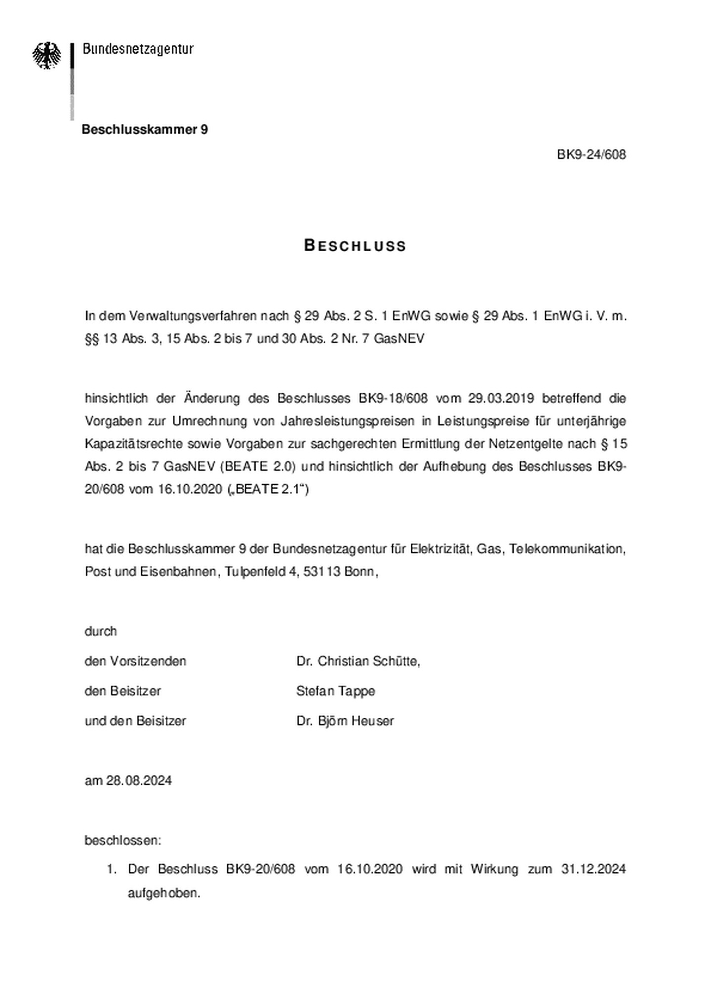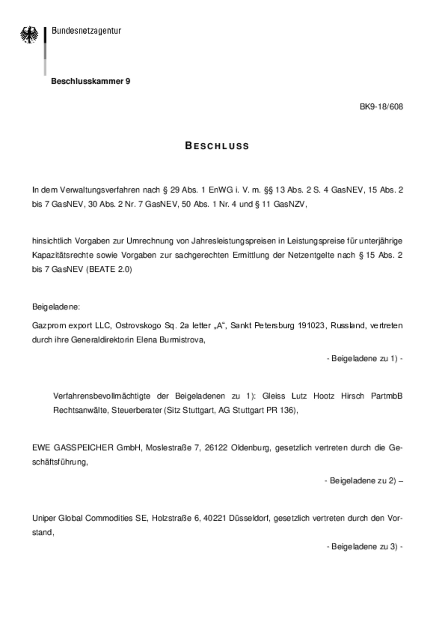 Festlegung „BEATE“