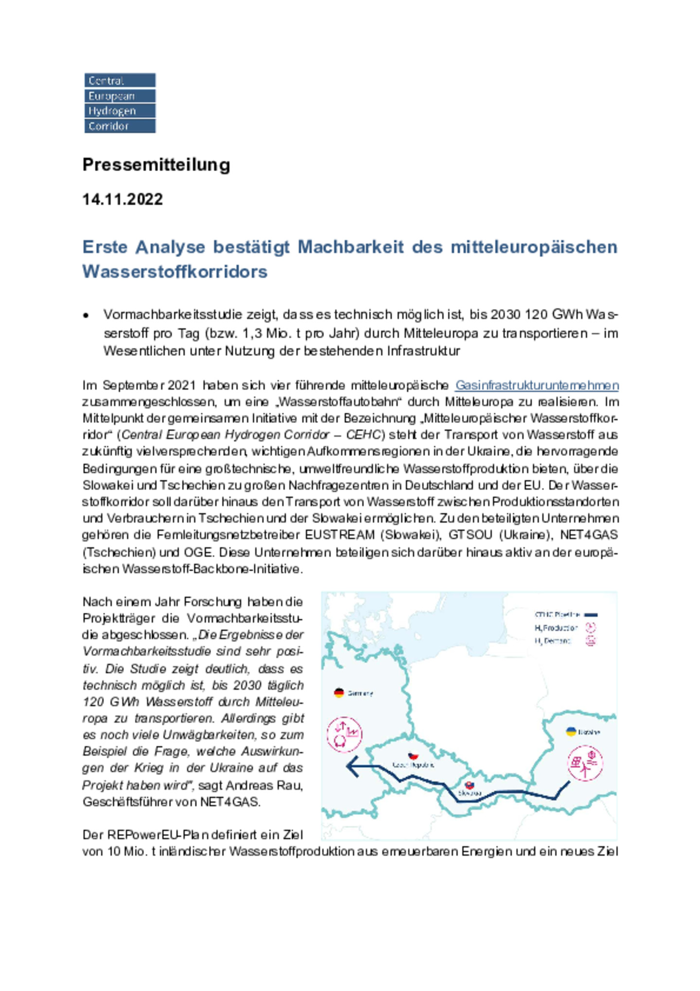 Pressefoto - Erste Analyse bestätigt Machbarkeit des mitteleuropäischen Wasserstoffkorridors