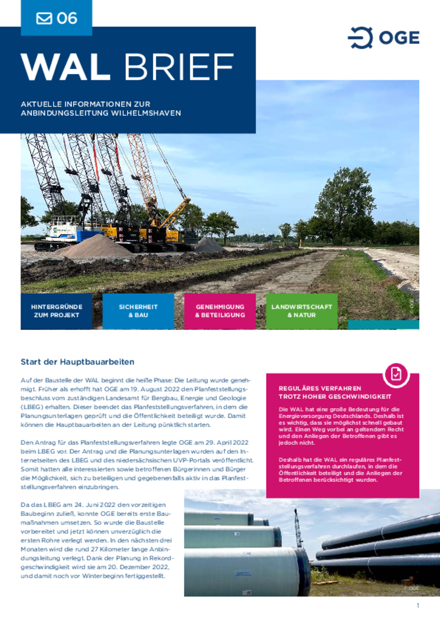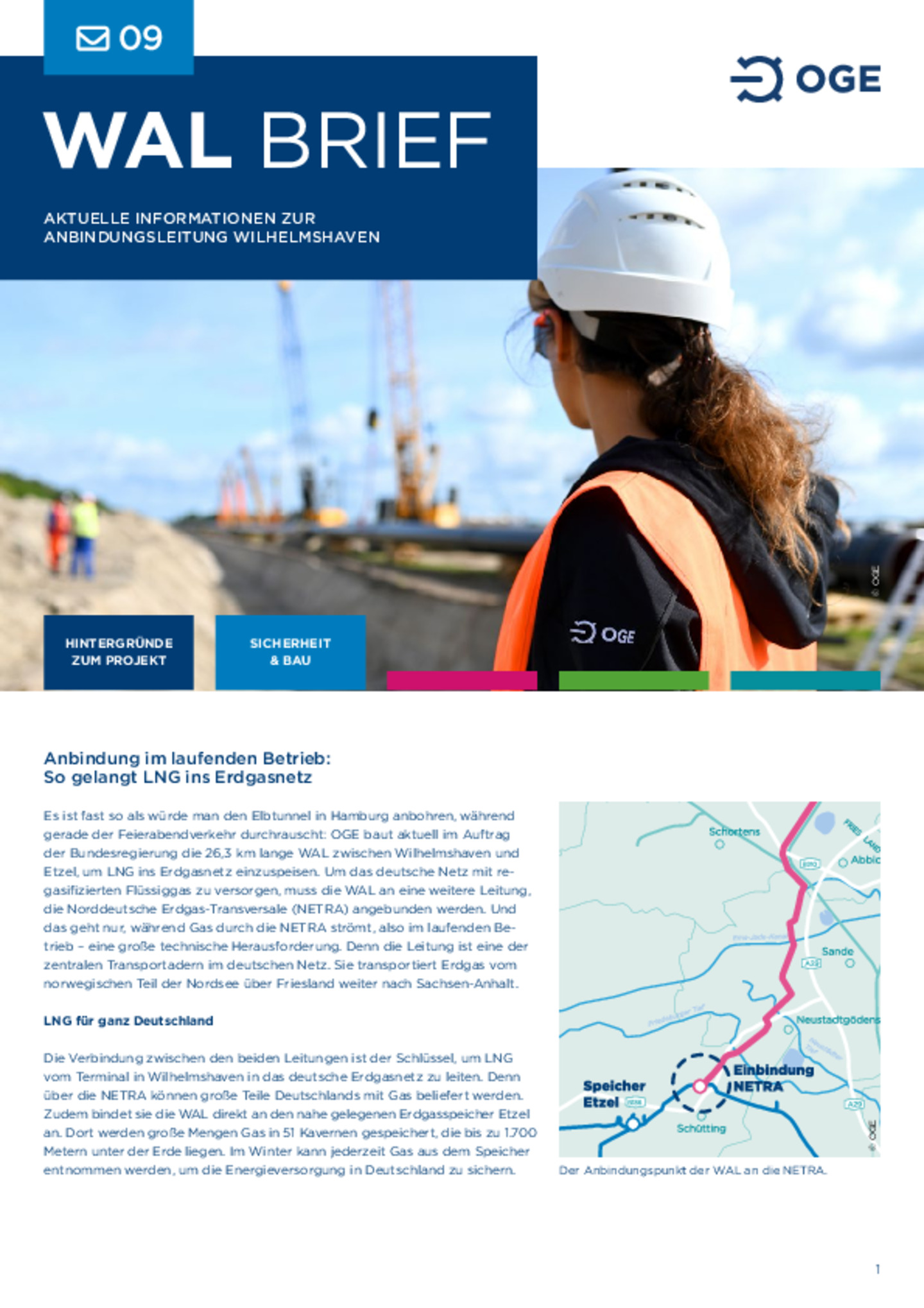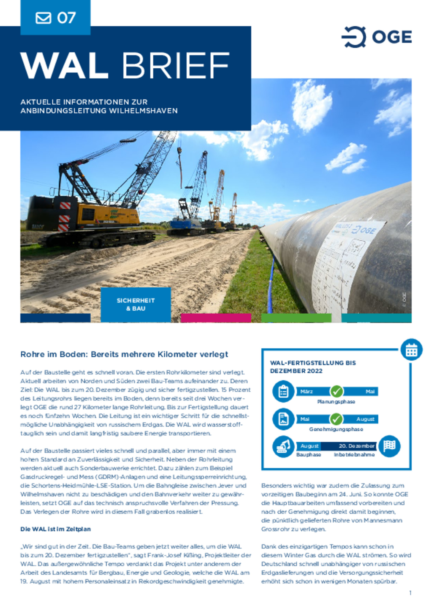 Einrichtung des Arbeitsstreifens und Holzeinschlag im Pfälzer Wald ab November 2022. Austausch von Telekommunikationskabeln. Austausch des Rohrstrangs der TENP I ab 2023 in Rheinland-Pfalz.