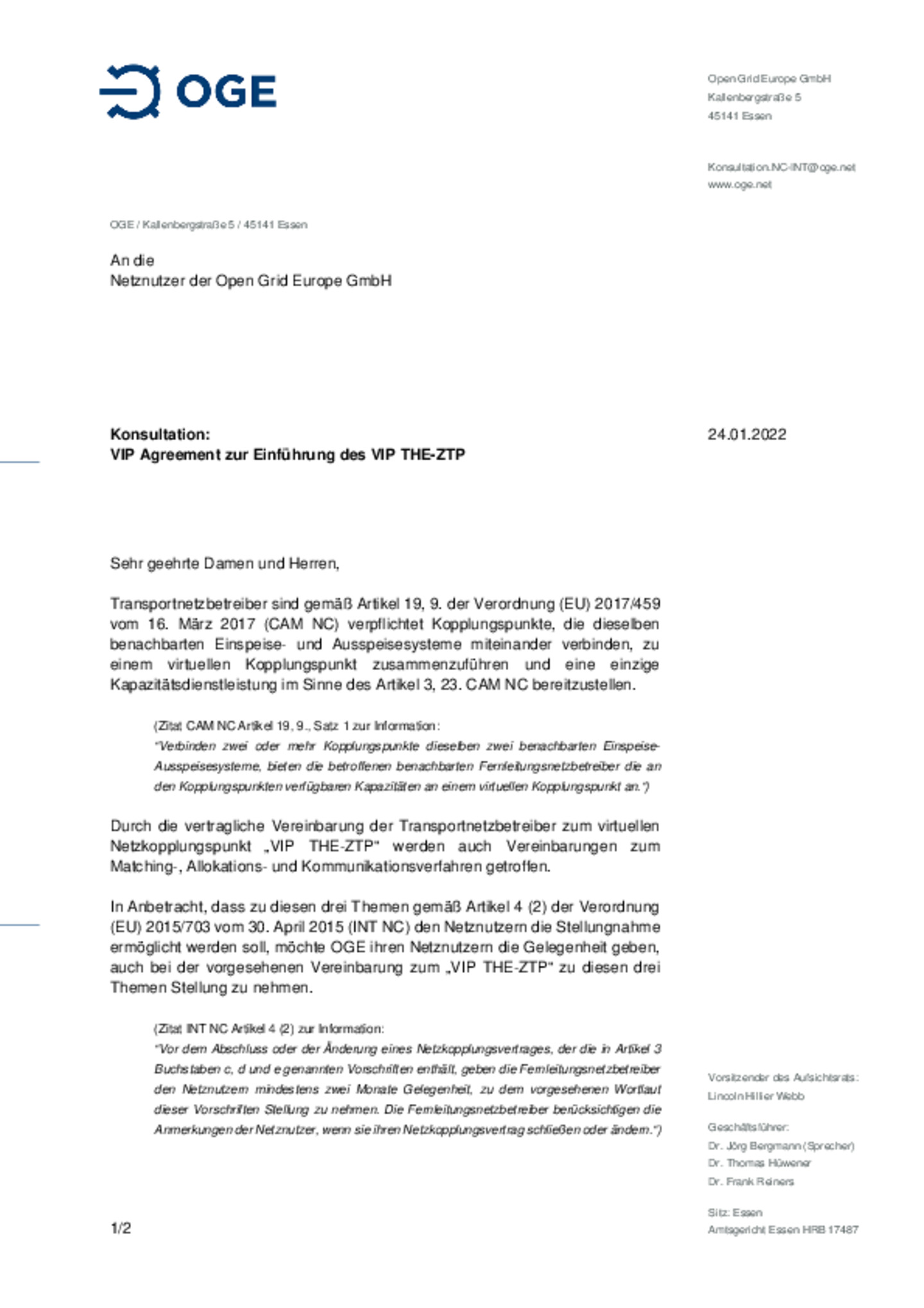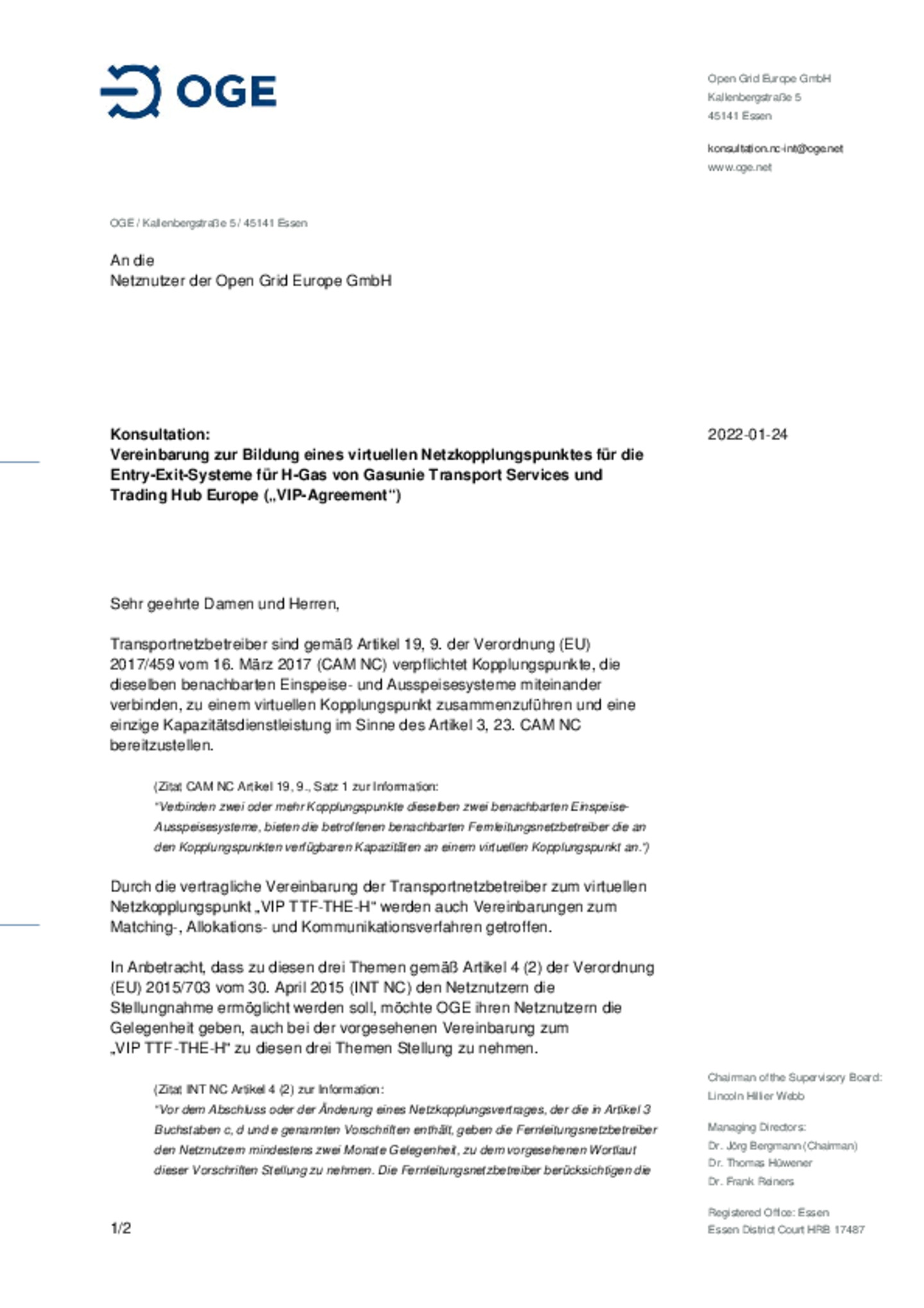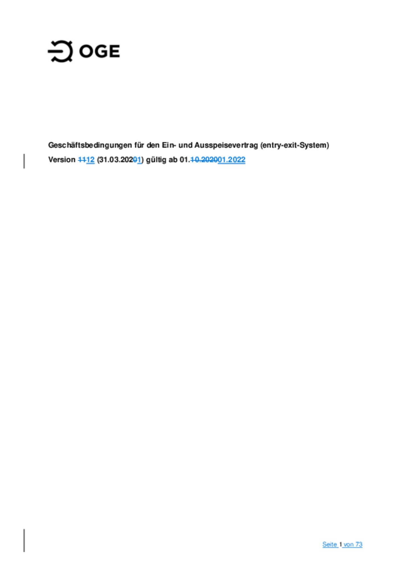 Geschäftsbedingungen für den Ein- und Ausspeisevertrag (entry-exit-System), gültig ab 01.01.2022