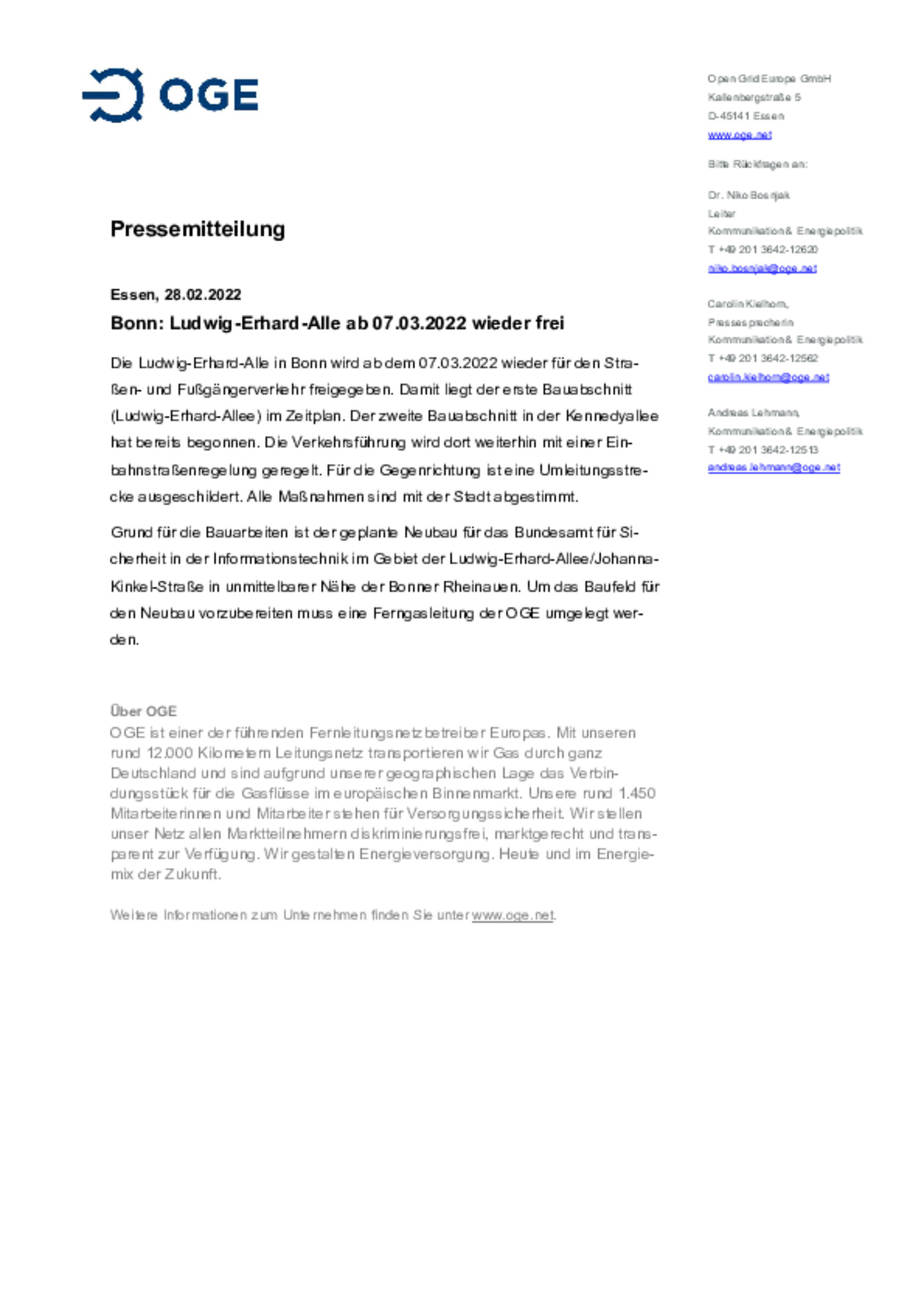 Die Ludwig-Erhard-Alle in Bonn wird ab dem 07.03.2022 wieder für den Straßen- und Fußgängerverkehr freigegeben. Damit liegt der erste Bauabschnitt (Ludwig-Erhard-Allee) im Zeitplan.