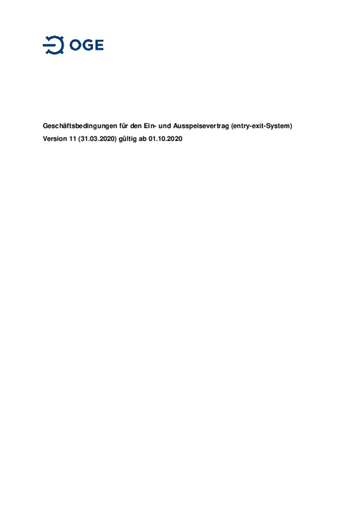 Geschäftsbedingungen für den Ein- und Ausspeisevertrag (entry-exit-System)