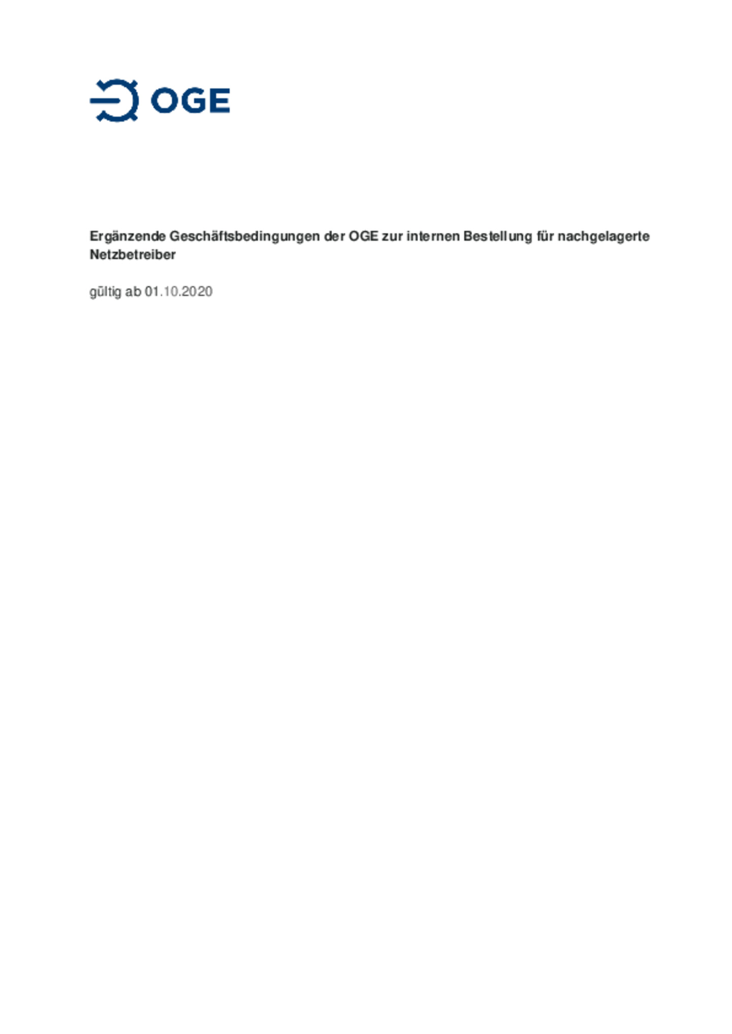 Ergänzende Geschäftsbedingungen der Open Grid Europe GmbH zur internen Bestellung für nachgelagerte Netzbetreiber ab 01.10.2020
