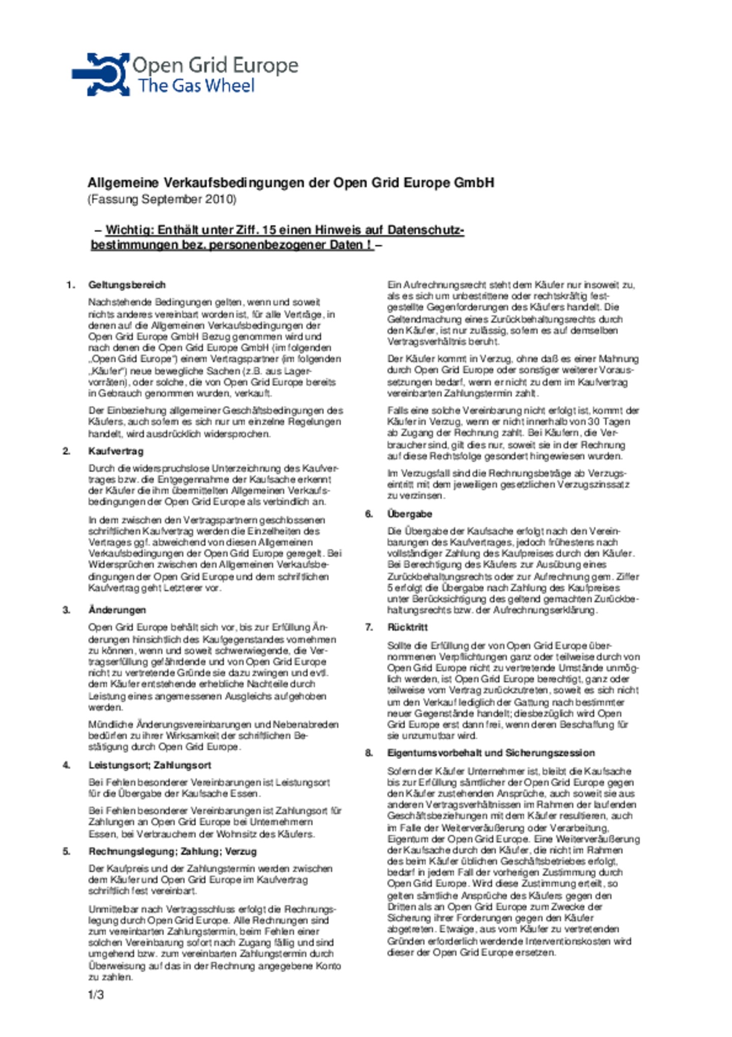 Allgemeine Verkaufsbedingungen der Open Grid Europe GmbH
