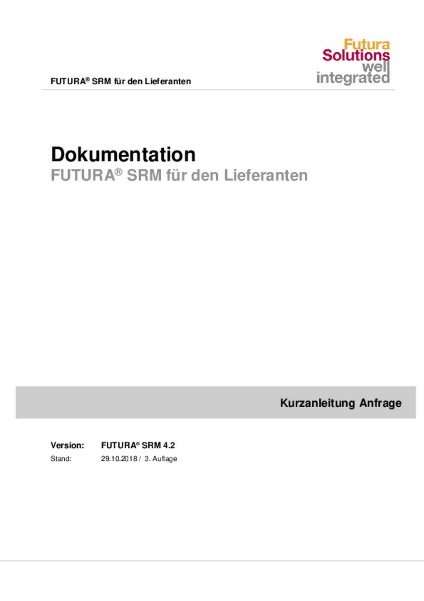 Kurzanleitung Futura SRM Anfrage/Angebot durch den Lieferanten