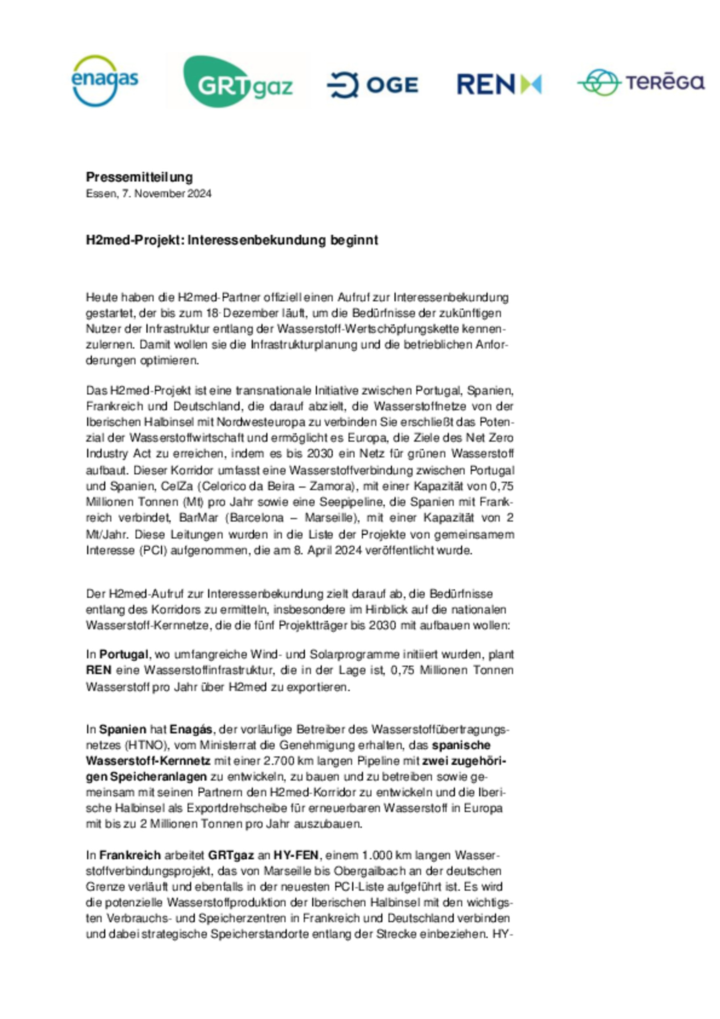 Heute haben die H2med-Partner offiziell einen Aufruf zur Interessenbekundung gestartet, der bis zum 18. Dezember läuft, um die Bedürfnisse der zukünftigen Nutzer der Infrastruktur entlang der Wasserstoff-Wertschöpfungskette kennenzulernen. Damit wollen sie die Infrastrukturplanung und die betrieblichen Anforderungen optimieren.