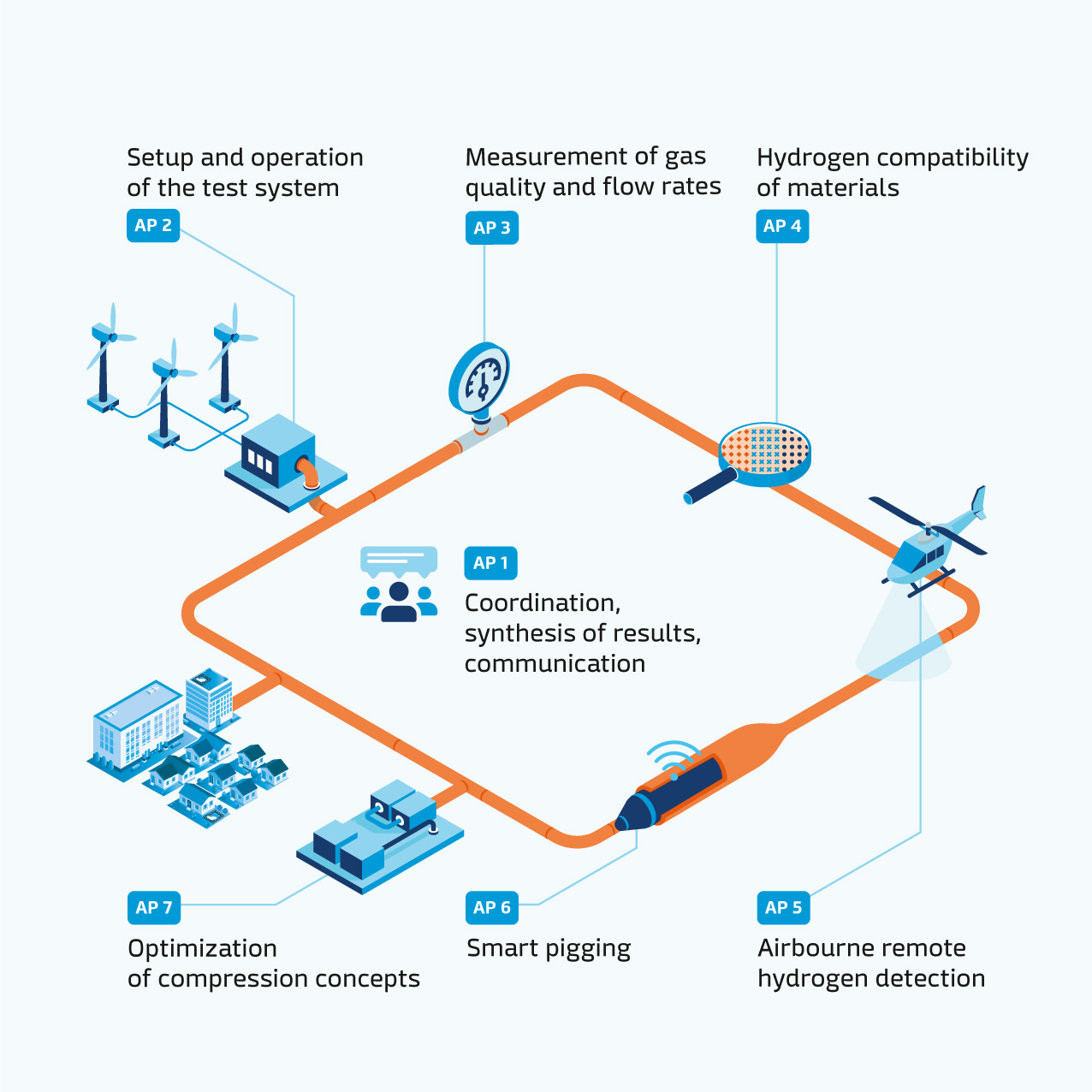 The project includes a test and demonstration environment set up and operated around an experimental pipeline in Lingen (Ems) which allows new technologies and methods to be developed and tested for practical use. The project will run until April 2025.