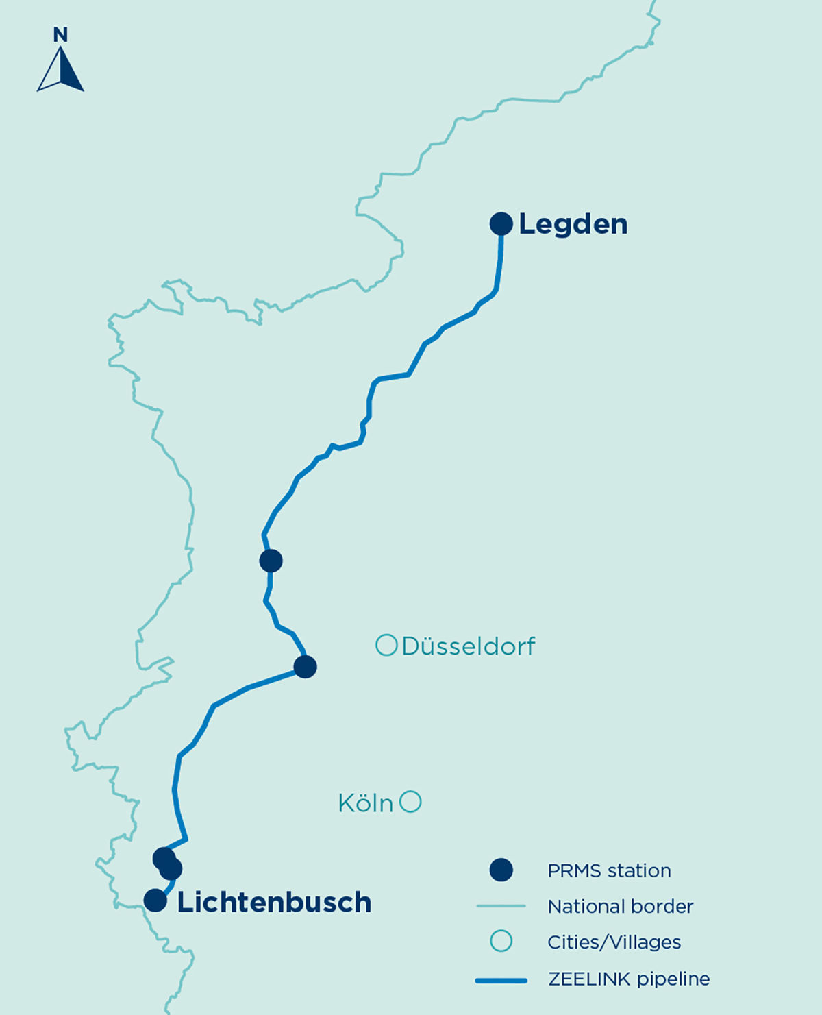 The ZEELINK project included the construction of a new pipeline from the Belgian-German border near Lichtenbusch to Sankt Hubert near Krefeld and on to Legden near Ahaus in North Rhine-Westphalia as well as a compressor station in Würselen and another one in Legden.