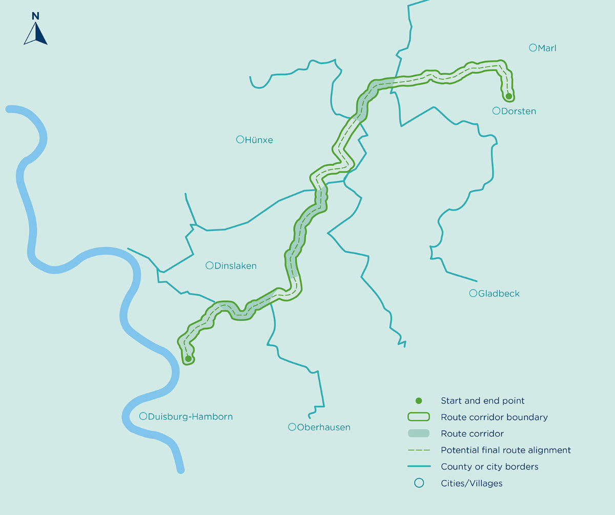 Following the regional planning assessment by Regionalverbund Ruhr in winter 2022, the planning approval decision for the section in the Münster administrative district followed in 2025.