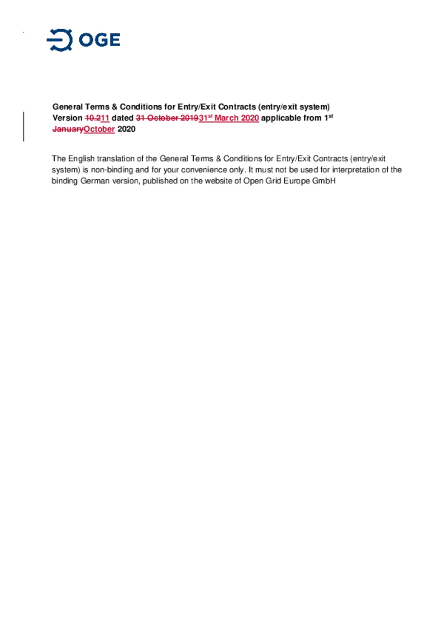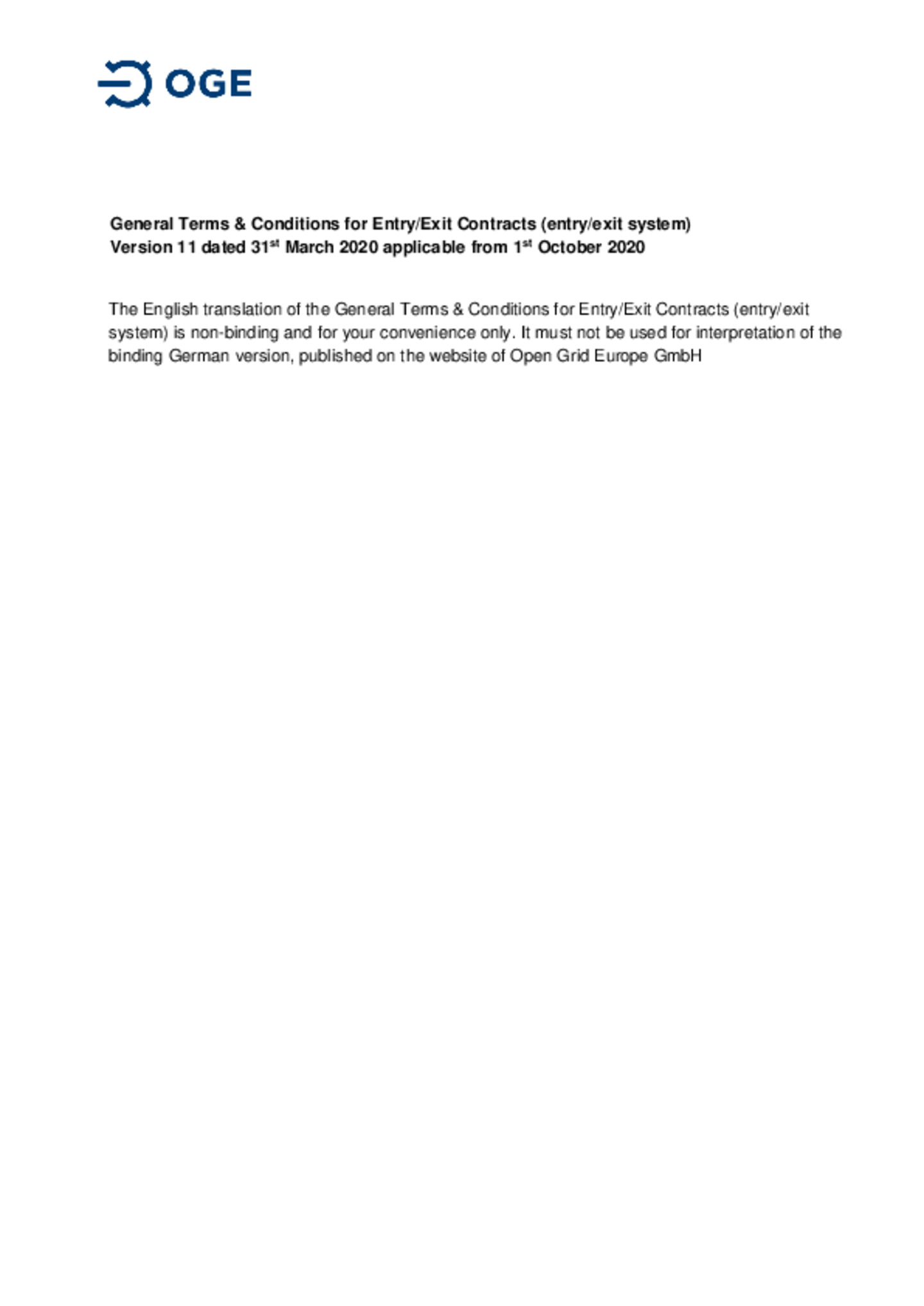 General Terms & Conditions for Entry/Exit Contracts (entry/exit system)