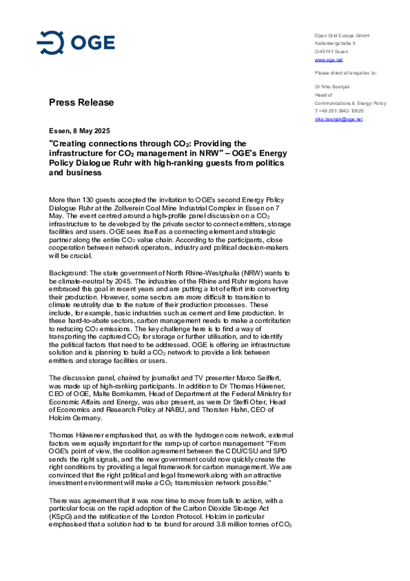 OGE's Energy Policy Dialogue Ruhr 2025 with high-ranking guests from politics and business