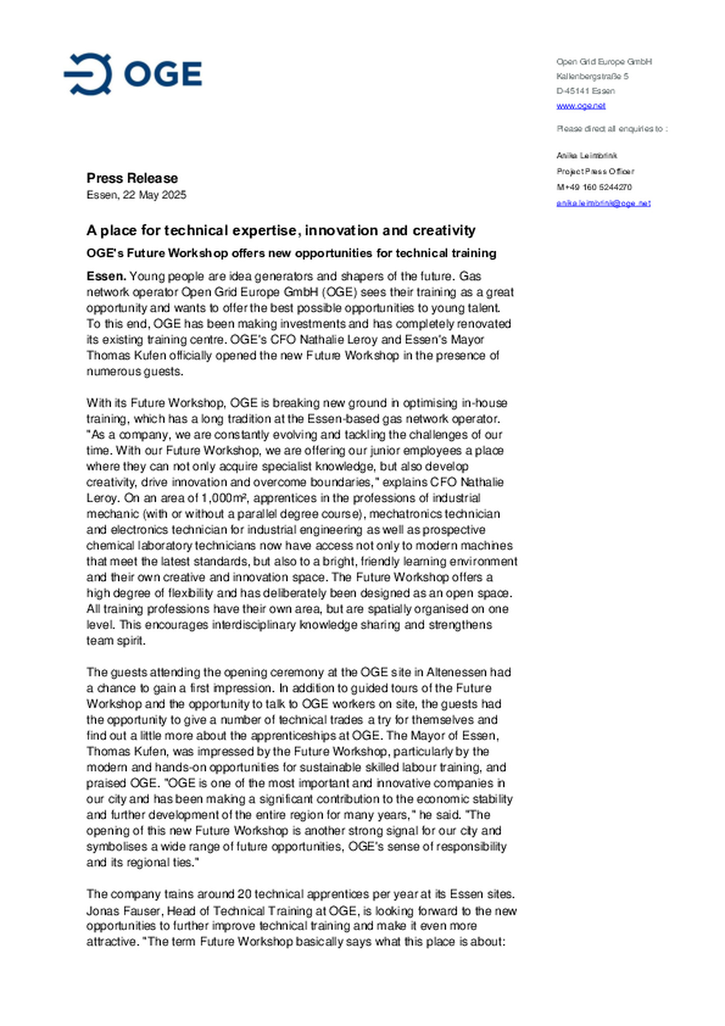 OGE's Future Workshop offers new opportunities for technical training