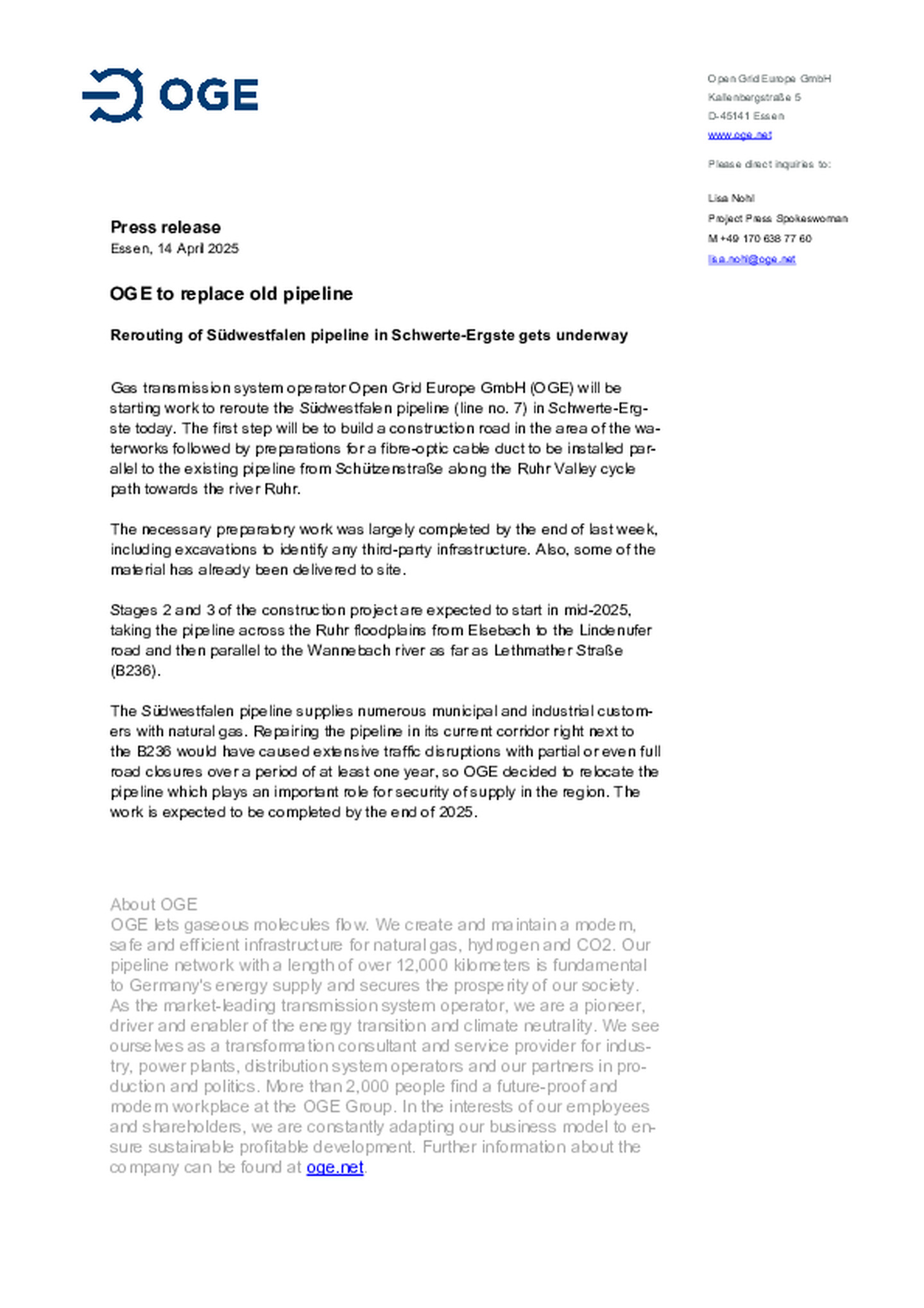 OGE to replace old pipeline