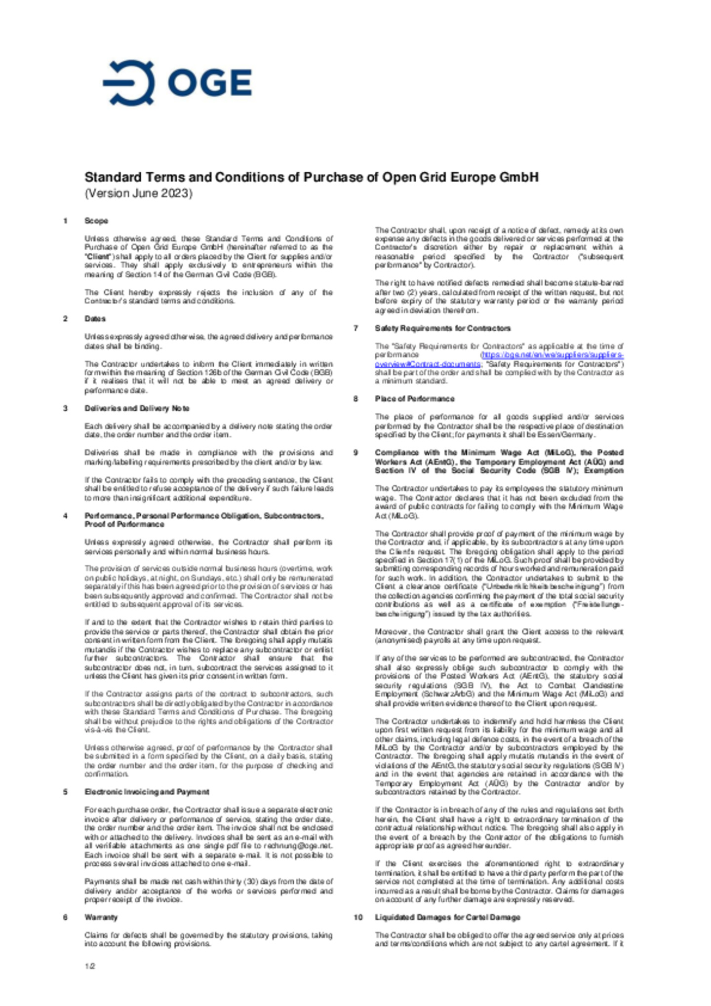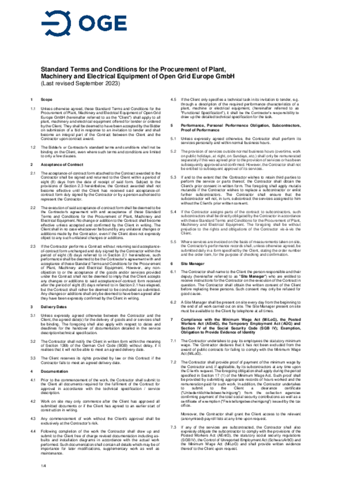 Standard Terms and Conditions for the Procurement