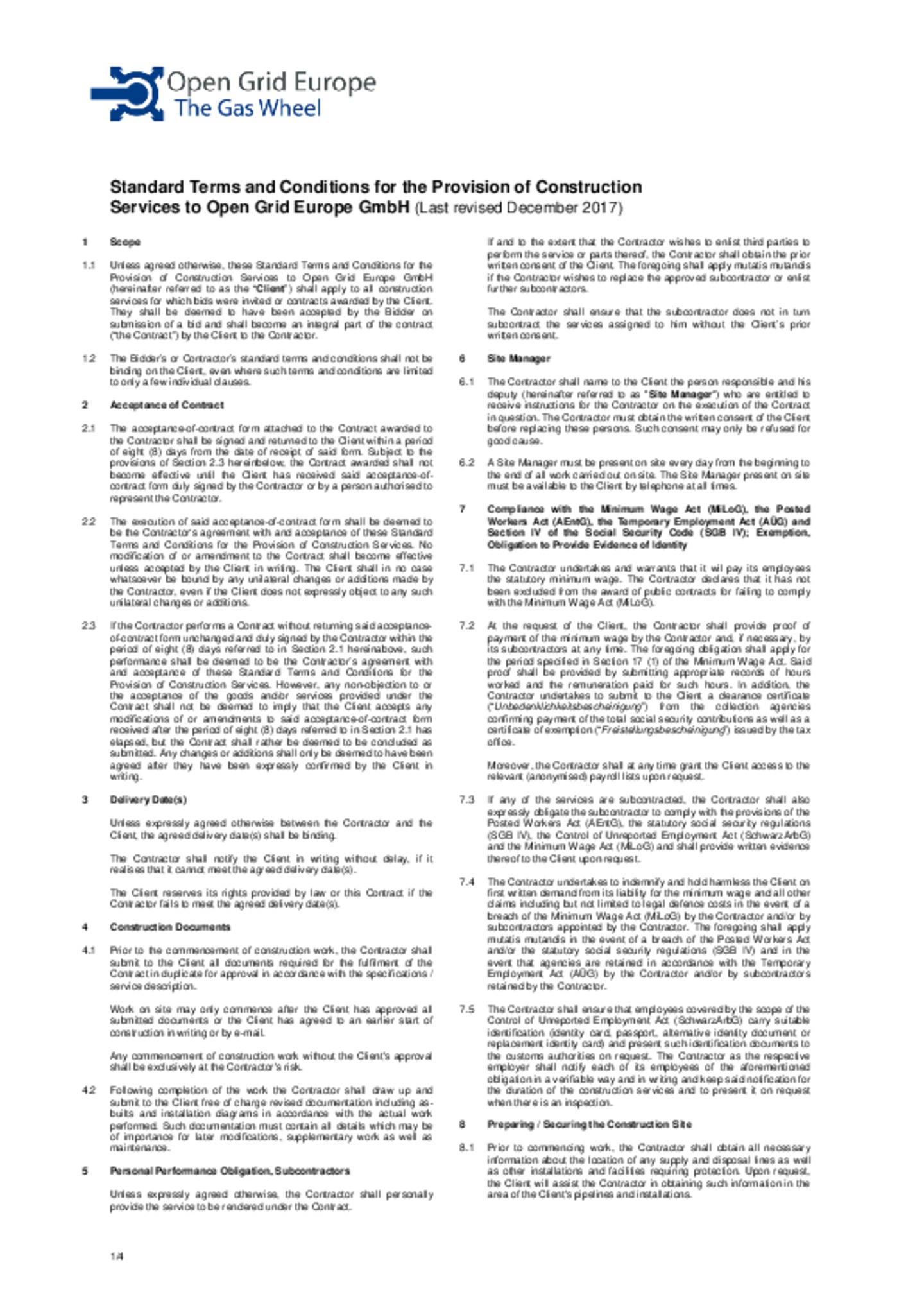 Standard Terms and Conditions for the Provision of Construction Services