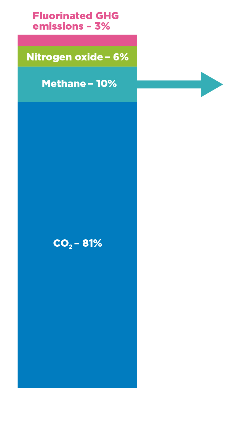 Apart from carbon emissions, methane is one of the key factors in man-made climate change, so it is of the utmost importance to continue reducing methane emissions. These occur, for example, in agriculture, waste management and also during gas transmission, when, for example, unburned natural gas is released into the atmosphere. Methane emissions account for 10% of Europe’s total greenhouse gas (GHG) emissions, and they were almost halved between 1990 and 2017. The oil- and gas industry is responsible for 6,2% of methane emissions (of which 24% occur during gas transmission and storage1), so OGE has a responsibility to society as a whole.